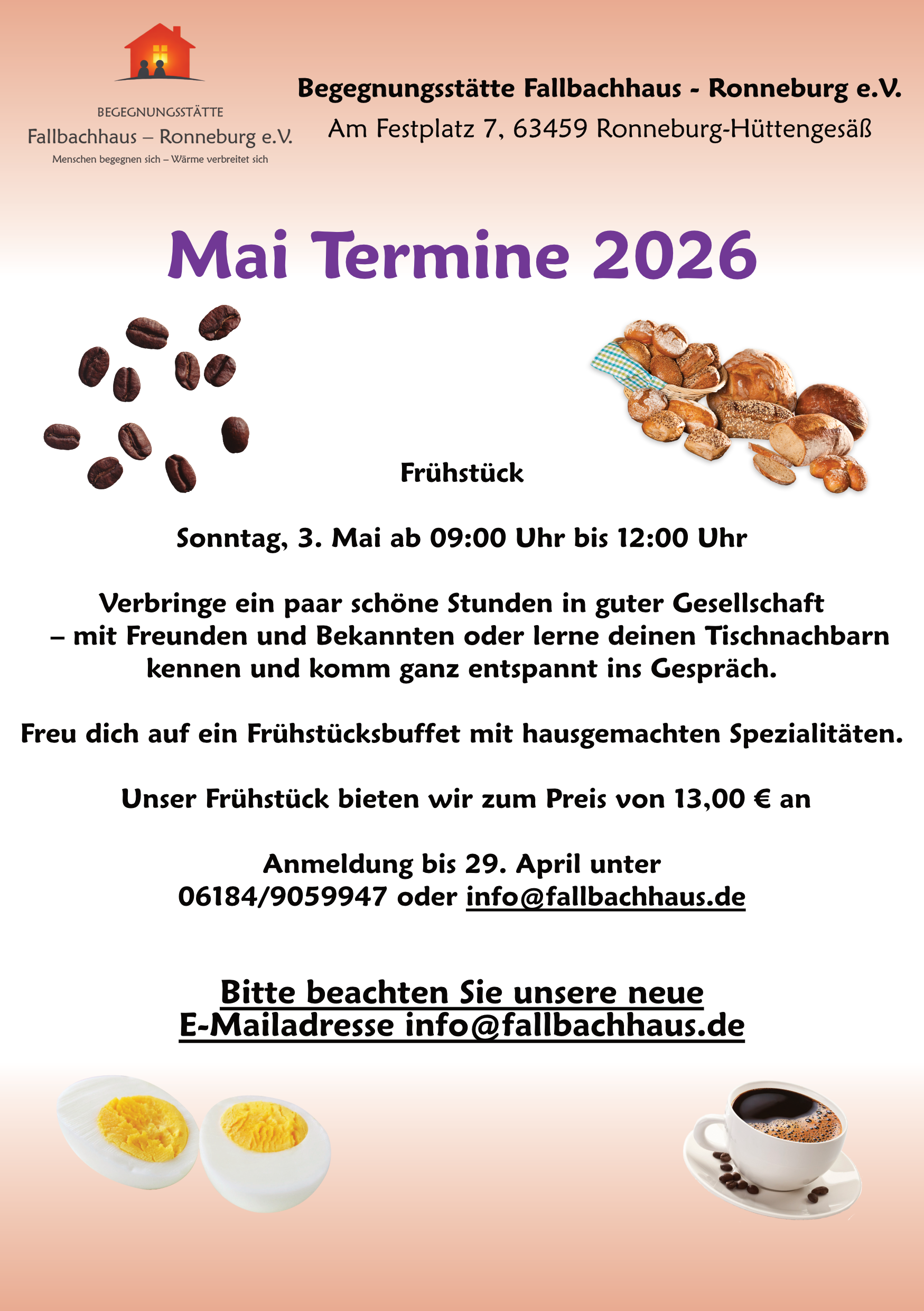 Der Begegnungsstätte Fallbachhaus – Ronneburg e.V. wurde gegründet, um die Begegnung der und Treffpunkte für Menschen jeden Alters – getragen von Ehrenamt und Engagement.